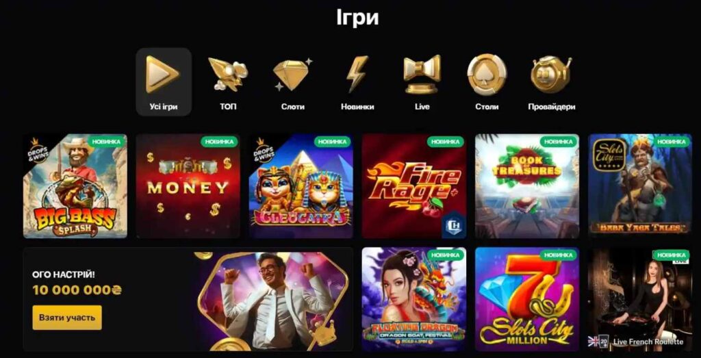 У СлотСіті на вас чекає великий вибір сертифікованих слотів і live-ігор від провідних студій. Хочете просто спробувати — запускайте демо безкоштовно. Готові до реальних ставок — швидка реєстрація, і можна грати на гроші.